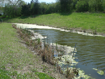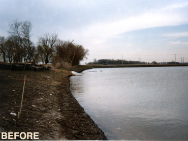 Oakridge Court- Algonquin, IL Stabilize bank and shoreline with Erosion-control matting and cover crop. MTAN did additional shoreline stabilization by installing native shoreline and emergent plants. (less than one seasons growth) |